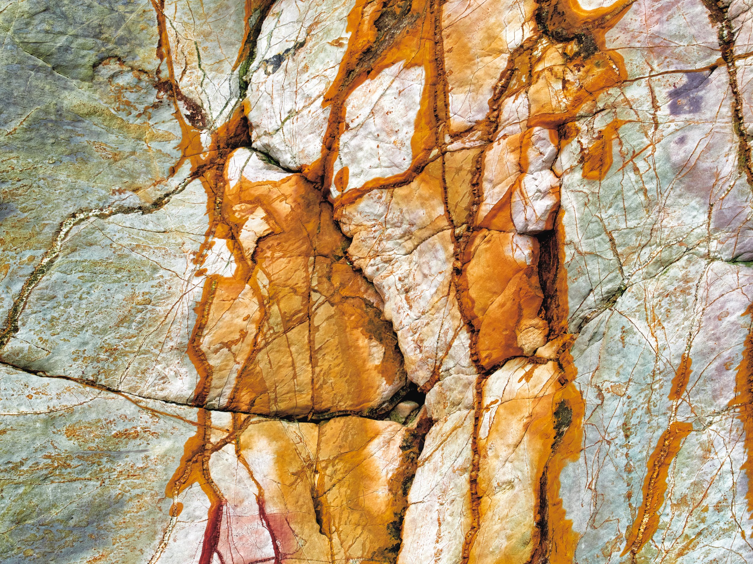 Until I lived by the sea I had no idea how much rocks change, day-by-day, season-by-season, in different light and weather. Caerfai no.2 is an image shot on one of the most geologically interesting beaches in Pembrokeshire - where orange and red iron staining has made abstract beautiful abstract patterns on St Non’s sandstone. Photos of the same rocks taken a few years later show how the colours and patterns have changed over time. Some of them are here, in the gallery.